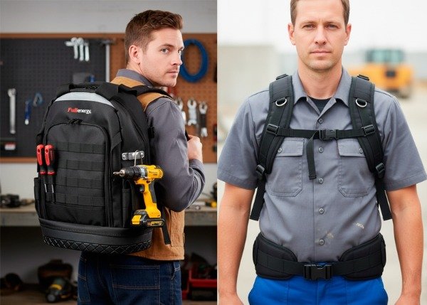 Cuenta con doble compartimiento con divisiones internas, bolsillos laterales, enganches para herramientas y cintas reforzadas para colgar accesorios. Sus correas y respaldo acolchados brindan un excelente confort durante el transporte, incluso con carga pesada. Ideal para organizar herramientas manuales, eléctricas y accesorios pequeños.