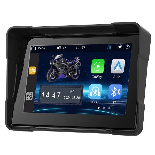 Monitor inteligente para motocicletas, diseñado para resistir las condiciones más exigentes, este dispositivo cuenta con una pantalla IPS de 5 pulgadas, conectividad inalámbrica CarPlay y Android Auto, y una estructura impermeable con certificación IP67. Su montura rápida antirrobo permite desmontarlo fácilmente al finalizar tu recorrido, mientras que el ajuste de ángulo y rotación de pantalla garantiza una visualización perfecta, ya sea en orientación vertical u horizontal. Disfruta de tu música, navegación GPS, llamadas y aplicaciones favoritas sin distracciones. Ideal para motociclistas que buscan tecnología, seguridad y comodidad en un solo dispositivo. ________________________________________ Pantalla: IPS de 5” – Resolución 800 × 480 – Alta luminosidad Chipset: ARM A7 Compatibilidad: Apple CarPlay inalámbrico / Android Auto inalámbrico Bluetooth: Bluetooth 4.2 Montura: Soporte giratorio universal ajustable + sistema de liberación rápida (antirrobo) Impermeabilidad: IP67 – Resistente al agua y al polvo Interfaz de carga: USB Tipo-C (alimentación directa o por cable ACC) Rotación de pantalla: Horizontal / Vertical Ajuste de brillo automático: Sí (auto-dimming) Compatibilidad de idiomas: Inglés, Español, Francés, Alemán, Ruso, Japonés, Coreano, Chino (Simplificado y Tradicional), entre otros Montaje: Universal, apto para todo tipo de motocicletas Resistencia: Estructura robusta y sellada, ideal para conducción en lluvia o polvo Alimentación: 12-24VCC (compatible con conexión directa o USB)
