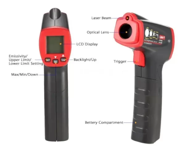 El Uni-t Ut300s cuenta con un puntero láser para una fácil orientación, lo que permite apuntar con precisión al objeto que se desea medir. Además, su amplio rango de medición y su alta precisión lo hacen adecuado para una variedad de tareas, desde la supervisión de la temperatura de los alimentos hasta la detección de problemas de calefacción y refrigeración.